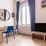A full kitchen is equipped with coffee and tea making facilities, as well as a microwave oven, a fridge, and kitchenware for self-catering purposes. Barbes bus stop is a stroll from the 75 m^2 Le Cerisier Des 4 Chemins - Appt 75M^2 Pour 6 Apartment.